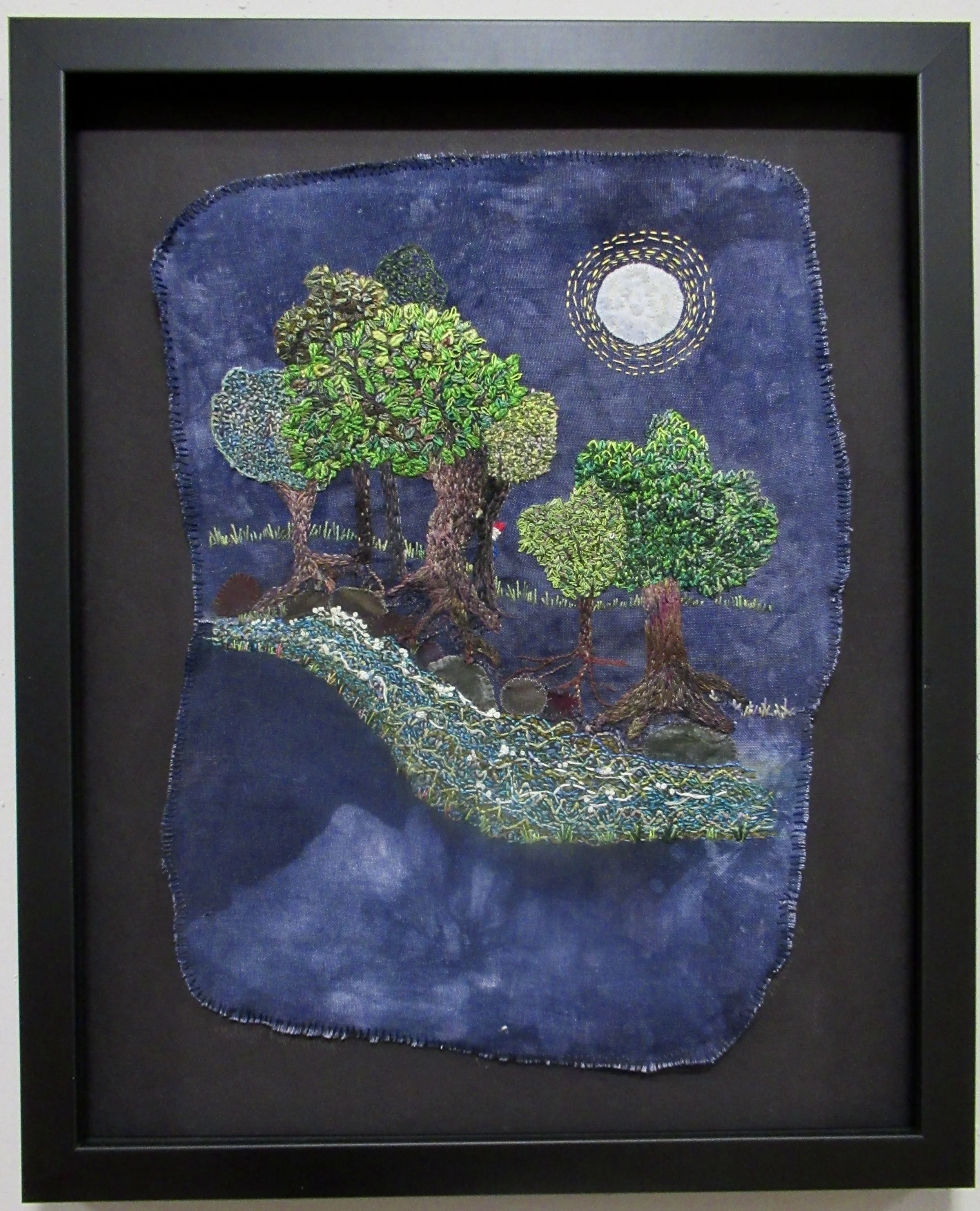 Techniques: Dyed, printed fabric, hand embroidery.