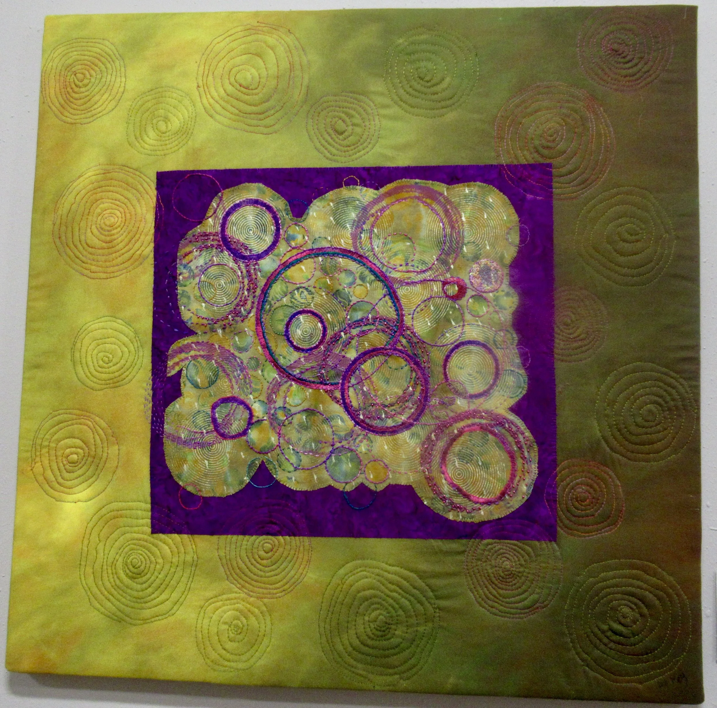 I became tired of stitching squares, so turned to circles as a design element.