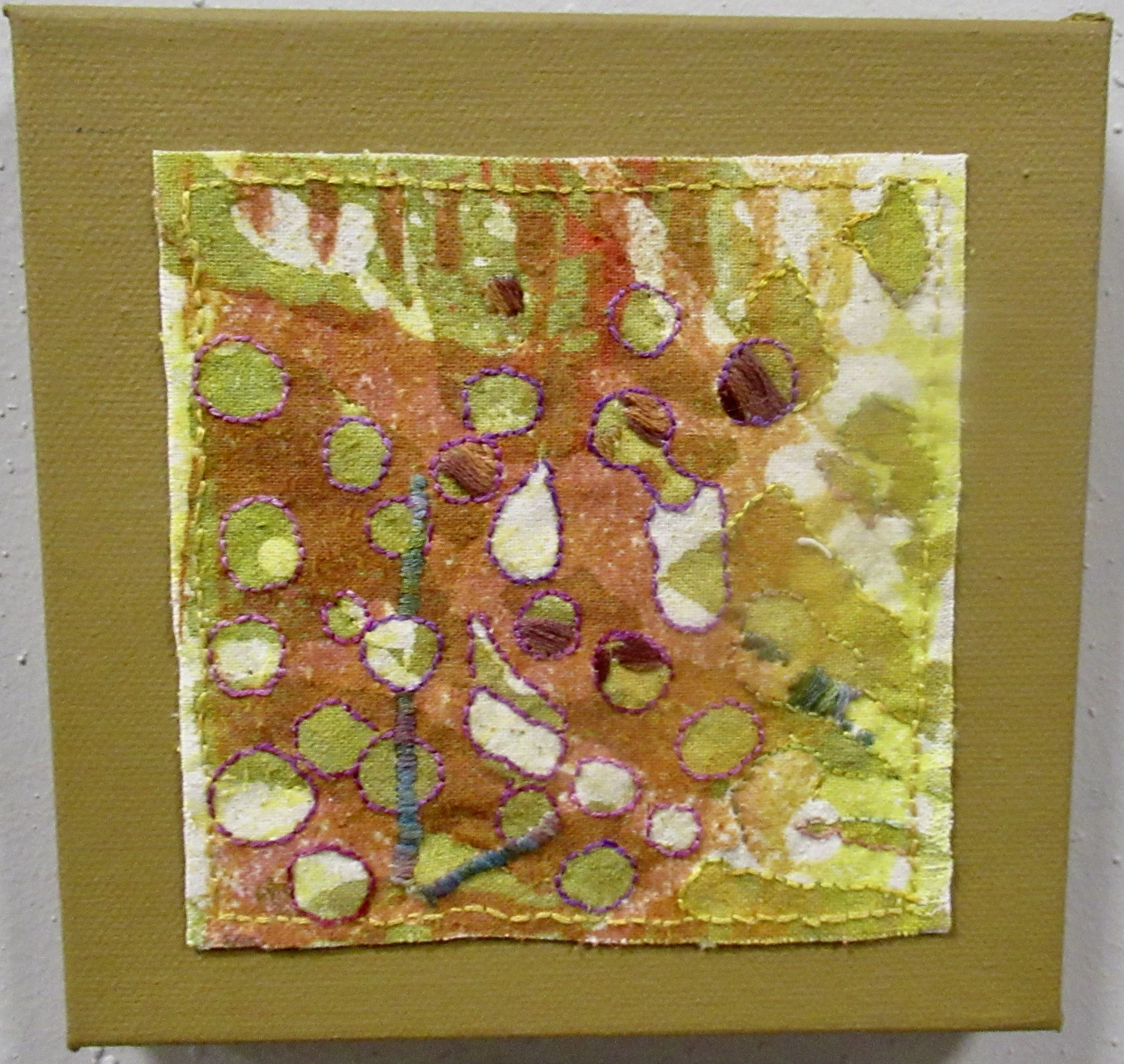 Hand dyed threads, dyed and mono printed fabric, hand embroidery